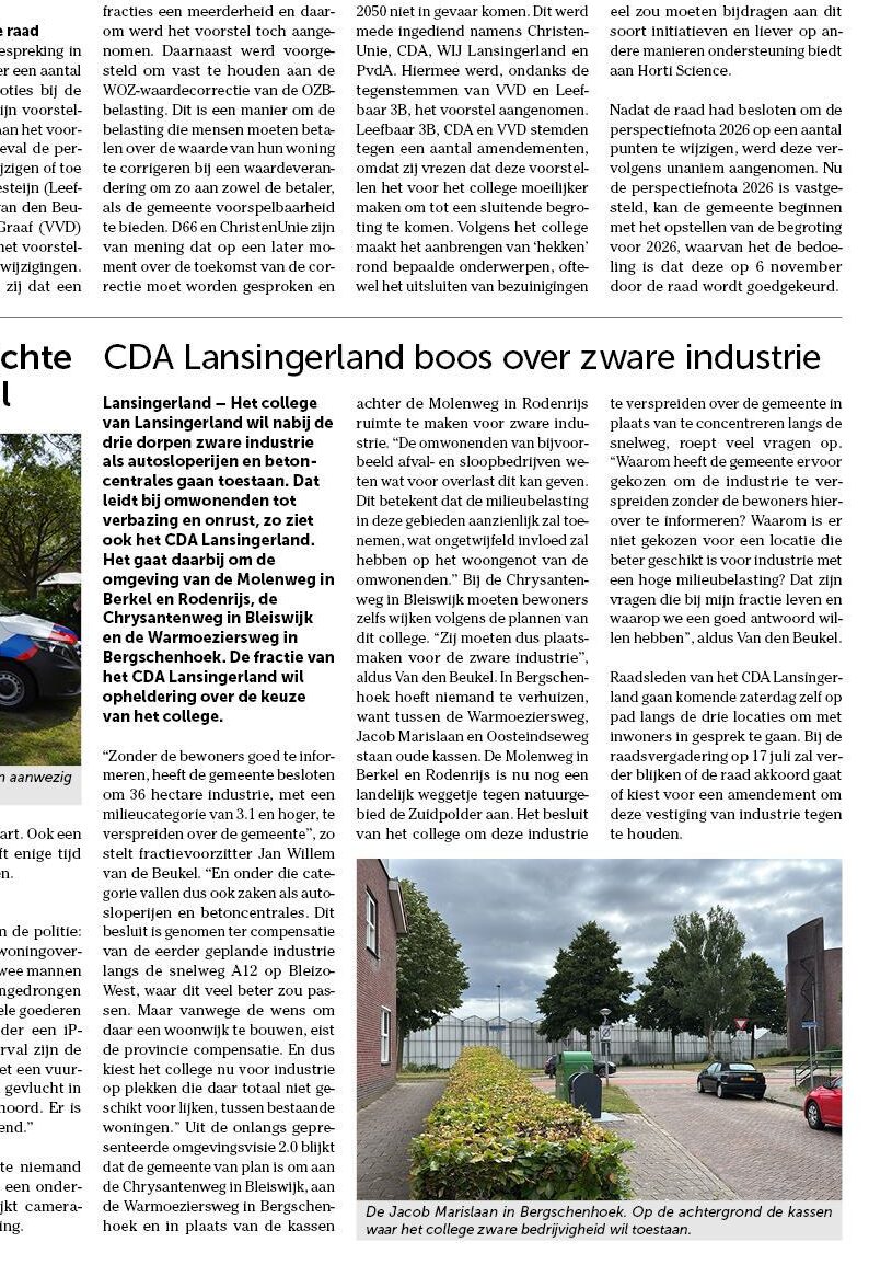 In de Heraut van 9 juli is een artikel verschenen over 3 locaties in Lansingerland waar de gemeente hoge milieucategorie bedrijvigheid wil gaan toestaan in haar Omgevingsvisie 2.0