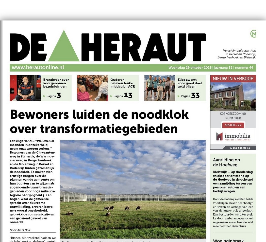 Op de voorpagina van De Heraut van 29 oktober staat een artikel over de omwonenden van de 3 voorgenomen HMC-locaties.